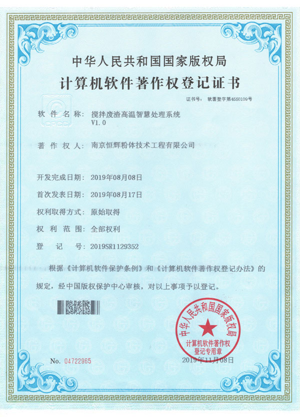 自公司成立以來(lái),恒輝建材已獲得多項(xiàng)發(fā)明專(zhuān)利證書(shū)、著作權(quán)證書(shū)及實(shí)用新型專(zhuān)利證書(shū)